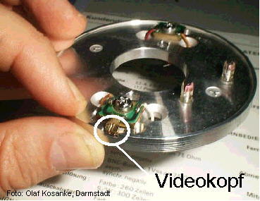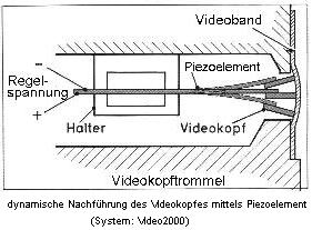 das auf ein Piezoplättchen geleitet wird, auf dem der Videokopf montiert