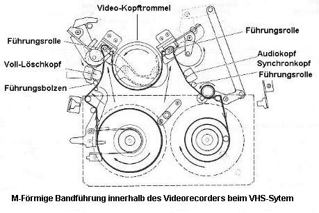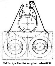 dem Betamaxsystem geänderten Bandführungsweg. Das Band wird hier